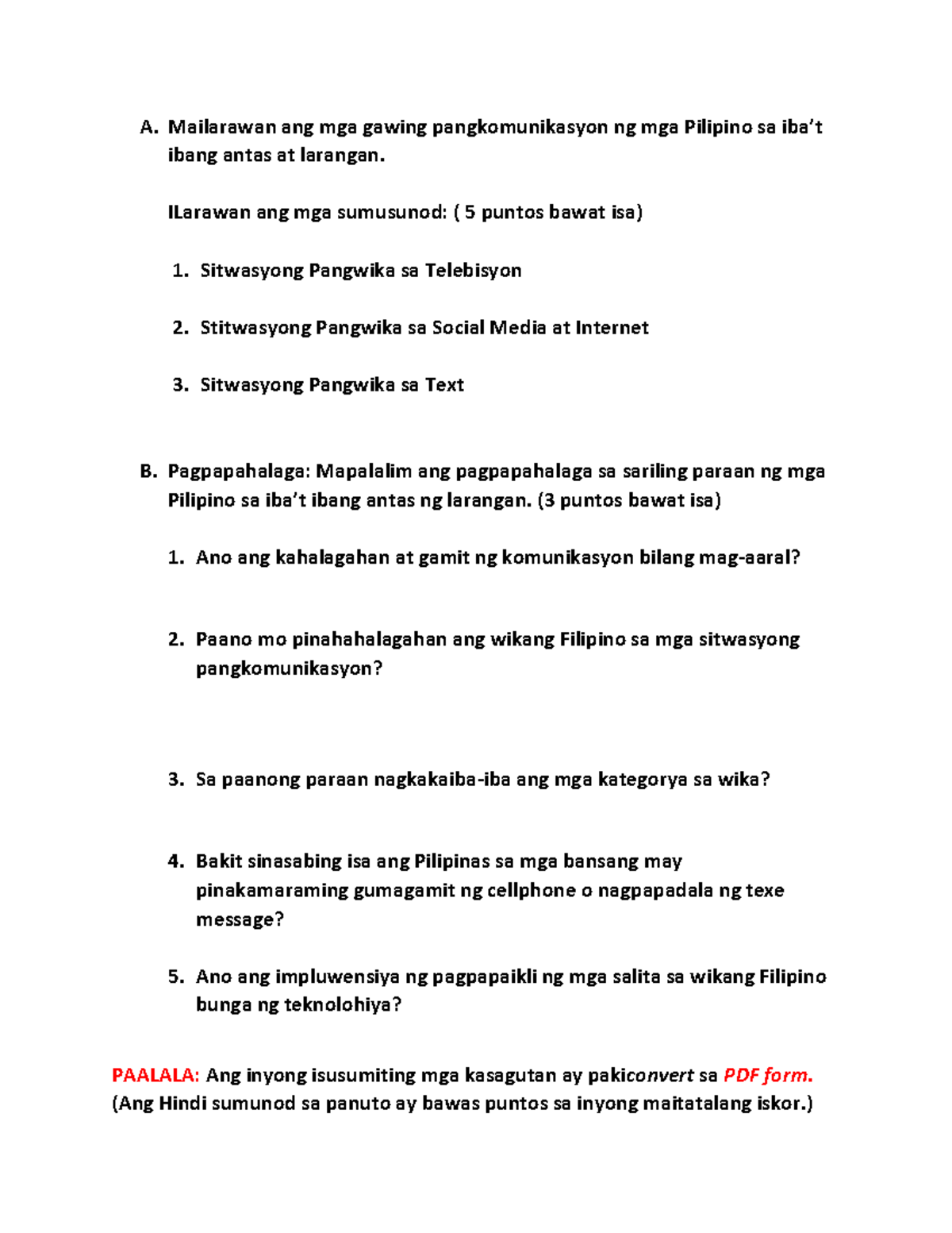 MGA FINE AGHAM PROBLEMA ARTS SA DAIGDIG. Kung walang iisang wika ang wikang Filipino.