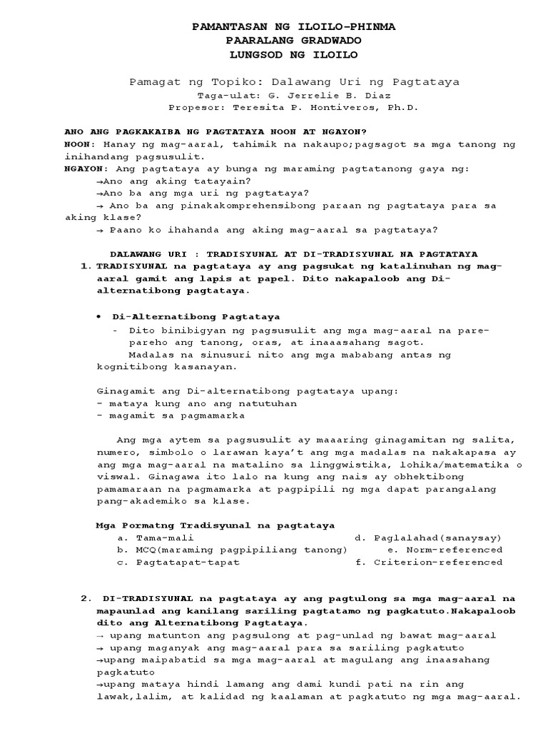 Sa ilalim ng new normal mahalaga pa ring mapalalim ang pag-unawa natin sa konteksto ng mga mag-aaral mabigyan sila ng. Save Save Ibat Ibang Paraan Ng Ebalwasyon For Later. Pagbuo ng ibat-ibang Uri ng Pagsusulit Test Question Panpacific University North Philippines.